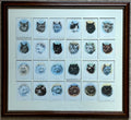 白い背景に大型のカラーキャットの頭部がセットされ、下部に品種名、裏面には豊富な説明文が掲載されています。長毛ホワイト、シャム、ロシアンブルー、短毛シルバータビー、ブラウンタビーマンクスなど、イギリスの野生猫やペットとして飼育されている品種も含まれています。オリジナルカードはご要望に応じて入手可能です。カードサイズ:約79×63mm