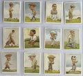 Originally issued in 1931, this attractive set contains colour drawings by 'Mel' of famous golfers in the 1920s/30s and the twelve selected for this set include the famous Henry Cotto, Fred Robson and the American Miss Glenna Collett. There is text about them all and their careers on the reverse. Approximate card size: 62x75mm
